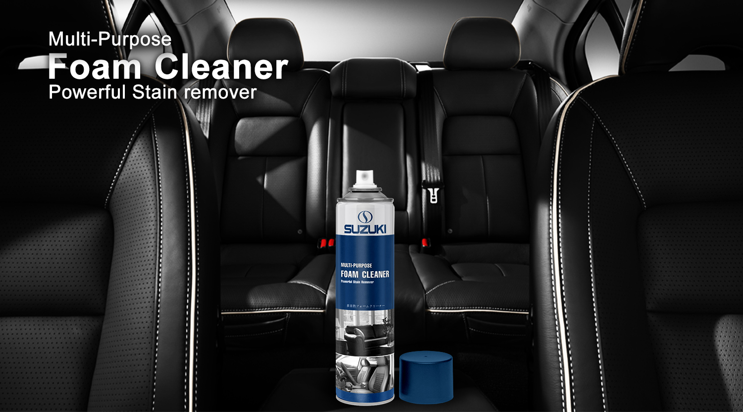 Multi-purpose foam cleaner Powerful Stain Remover With fast penetration and powerful cleaning property. Application For car. Cleaning and removing all kinds of stains, fingerprints and dust from fabric surfaces, plastic vinyl, chrome and automotive carpet.